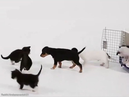 子猫4匹と子犬4匹を対面させてみたら…無邪気な交流が生まれた